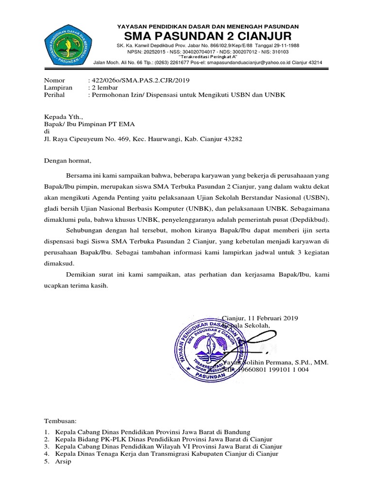 Tidak semua surat izin dituliskan oleh diri sendiri! Sakit) sehingga tidak bisa hadir di sekolah untuk mengikuti kegiatan pembelajaran. Berbicara mengenai kehadiran, setiap sekolah tentu menginginkan para siswa/i mereka harus hadir setiap hari sekolah yang sudah. Biasanya, seseorang izin tidak masuk karena suatu keperluan yang tidak bisa dihindarkan, seperti sakit, keperluan keluarga, dan kegiatan lainnya. Disebut surat pribadi karena ditulis perseorangan dan dinas karena.